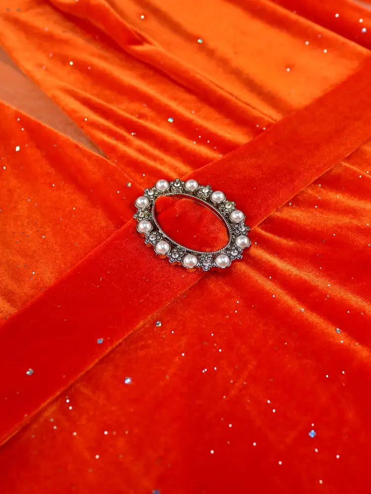 AOMEIDRESS Blue Velvet Glitter Christmas Dress V Neck Lantern Sleeves - Blue / S is backordered and will ship as soon as it is back in stock.