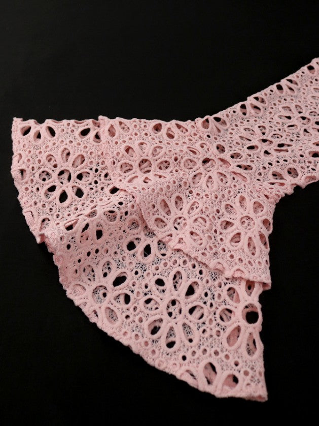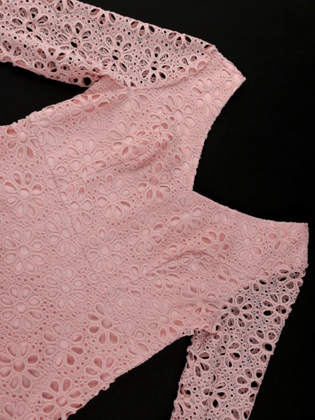 AOMEIDRESS Floral Lace Dress V Neck Hollow Out Long Flare Sleeve Slim - Pink / S is backordered and will ship as soon as it is back in stock.