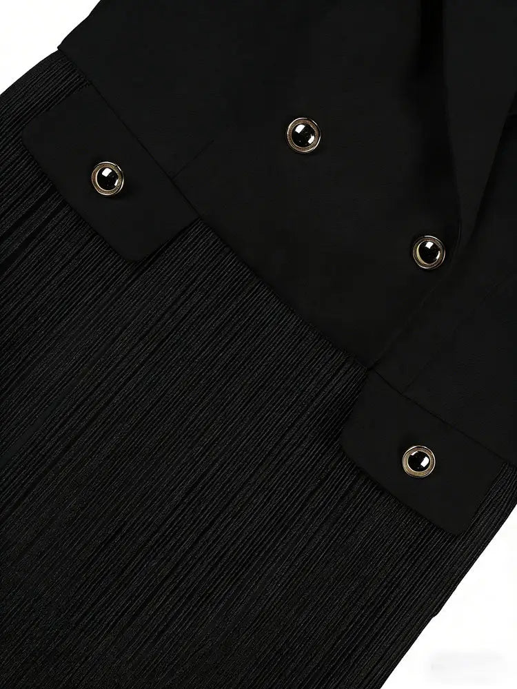 AOMEIDRESS Stylish Blazer Mini Dress Sleeveless Tassel Button Office Black / L
