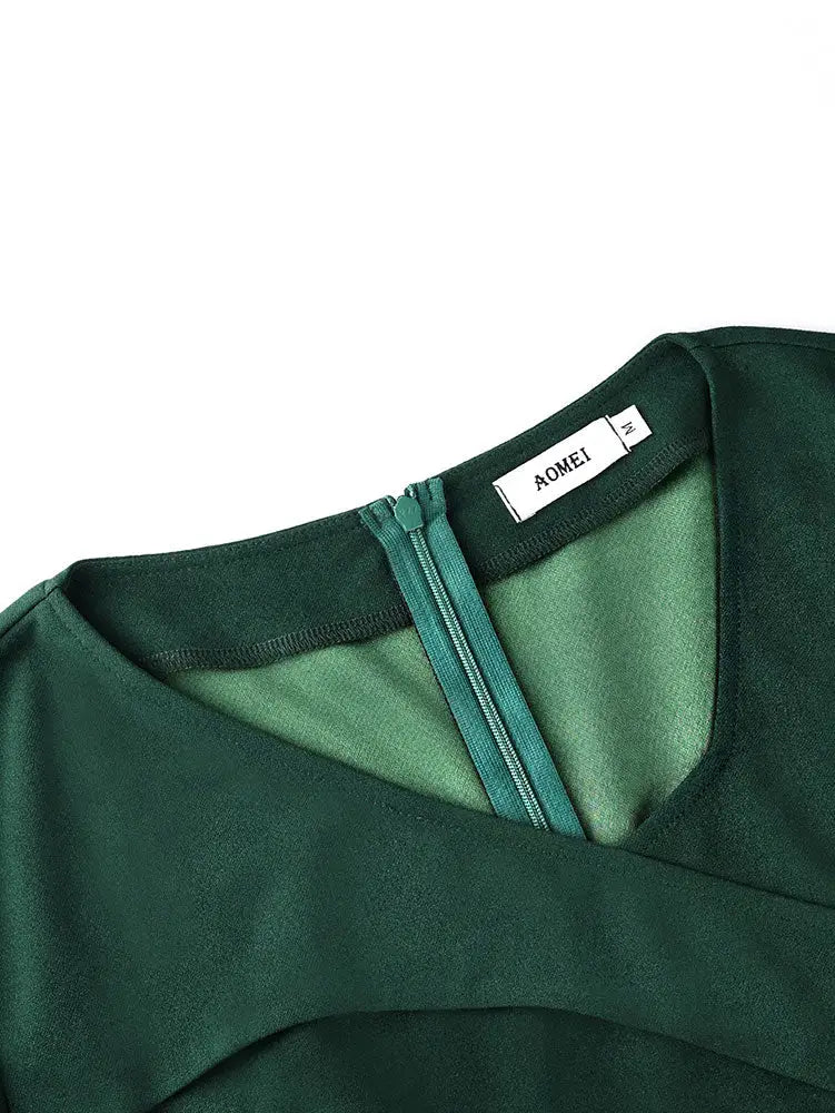 AOMEIDRESS Stylish Package Hip Dress V Neck with Irregular Ruffles - DarkGreen / S is backordered and will ship as soon as it is back in stock.