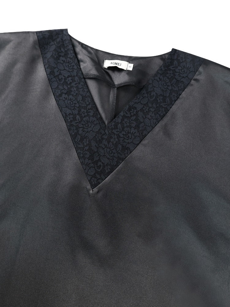 African Shiny Boubou V Neck Dresses Half Sleeves Lace Patchwork - black / One Size is backordered and will ship as soon as it is back in stock.