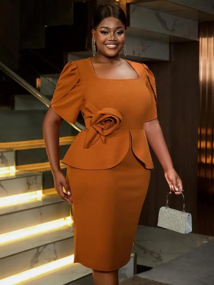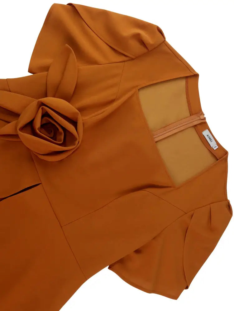 AOMEIDRESS 3D Floral Solid Color Dress Square Neck Long Sleeved - Brown / S is backordered and will ship as soon as it is back in stock.