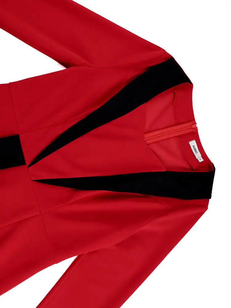 AOMEIDRESS Elegant Color Block Dress Long Sleeve Gowns Autumn New - Red / L is backordered and will ship as soon as it is back in stock.