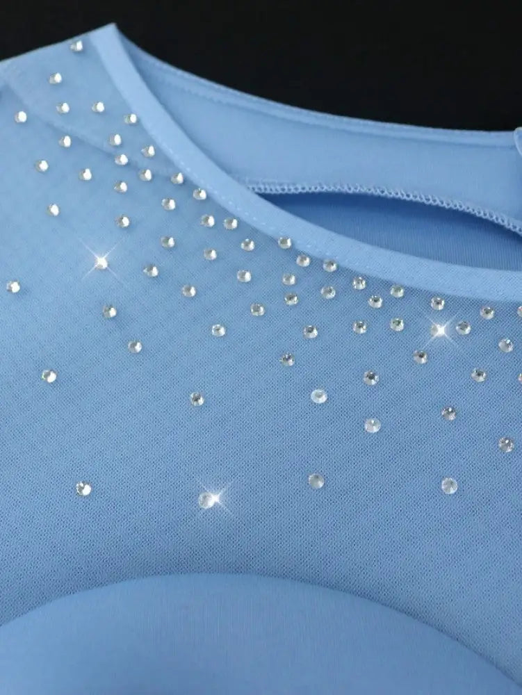 AOMEIDRESS Mesh Patchwork Hot Drill O Neck Sleevelss A-Line Dress - Blue / S is backordered and will ship as soon as it is back in stock.