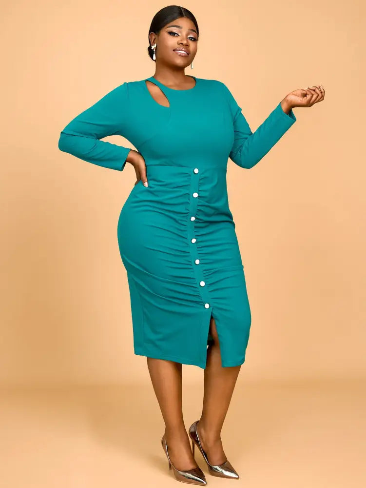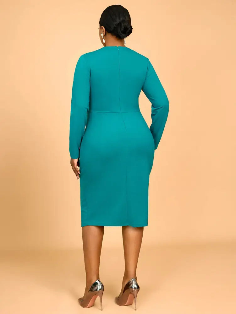 AOMEIDRESS Spring Wedding Guest Dress Round Neck Lace Up Pleated Green / S