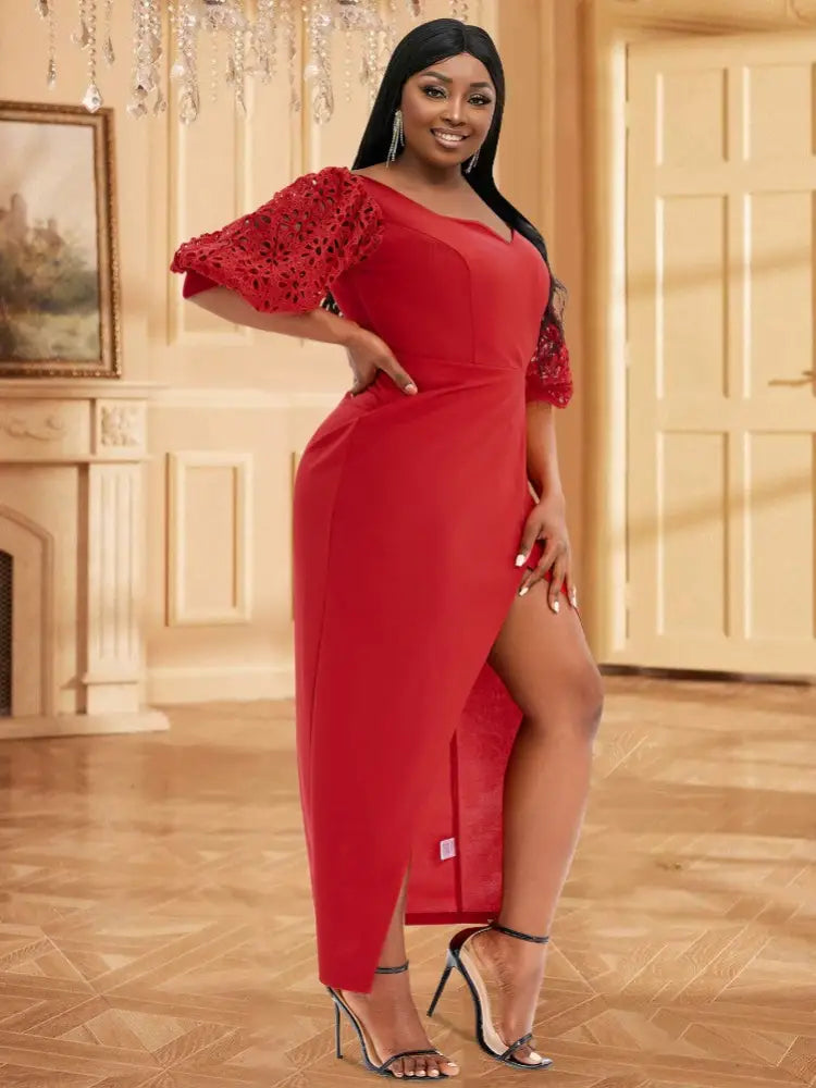 Details: Solid,Hollow Out,Front Slit,Lace,Ruched
